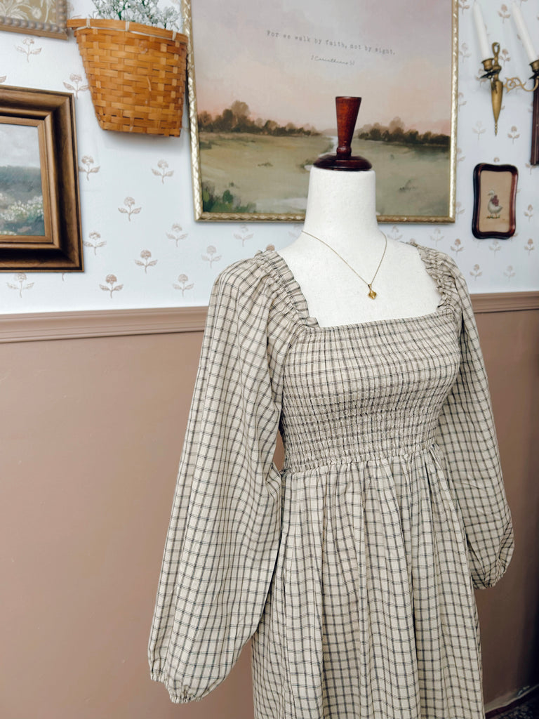 Our women's Square Neck Checkered Plaid Smocked Chest Maxi Dress combines classic style with everyday versatility. Made from 100% cotton for breathable comfort, it features a square neckline and a smocked chest for a flattering fit. With three-quarter sleeves and an on-and-off-shoulder option available in brown and taupe, it’s a perfect choice for casual yet polished looks. Complete with side pockets for added convenience.